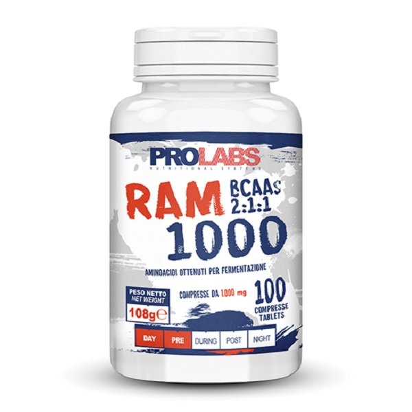 RAM 1000 è un integratore alimentare di aminoacidi a catena ramificata ottenuti mediante fermentazione, con vitamine B1 e B6. RAM 1000 è adatto ad integrare la dieta degli sportivi. I componenti di RAM 1000 intervengono nelle funzioni fisiologiche di: metabolismo energetico (vit. B1), riduzione della stanchezza e dell’affaticamento (vit. B6). Non contiene ingredienti di origine animale.